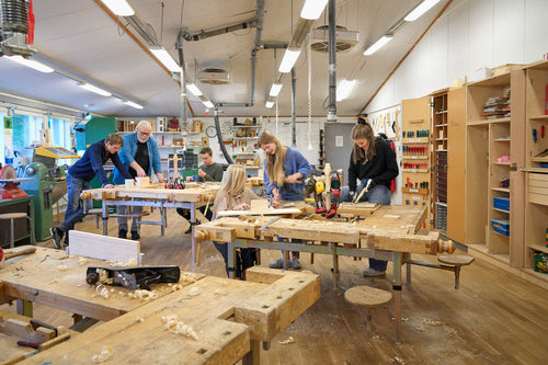 Sjöbergs har inrett träslöjdssalar sedan 50-talet och tillsammans med träslöjdslärare har vi utvecklat våra produkter genom åren för att skapa de bästa förutsättningarna för både elever och lärare. I sortimentet hittar du bänkar av olika storlekar som ger möjligheten att sätta ihop bänkgrupper för två eller fyra elever.